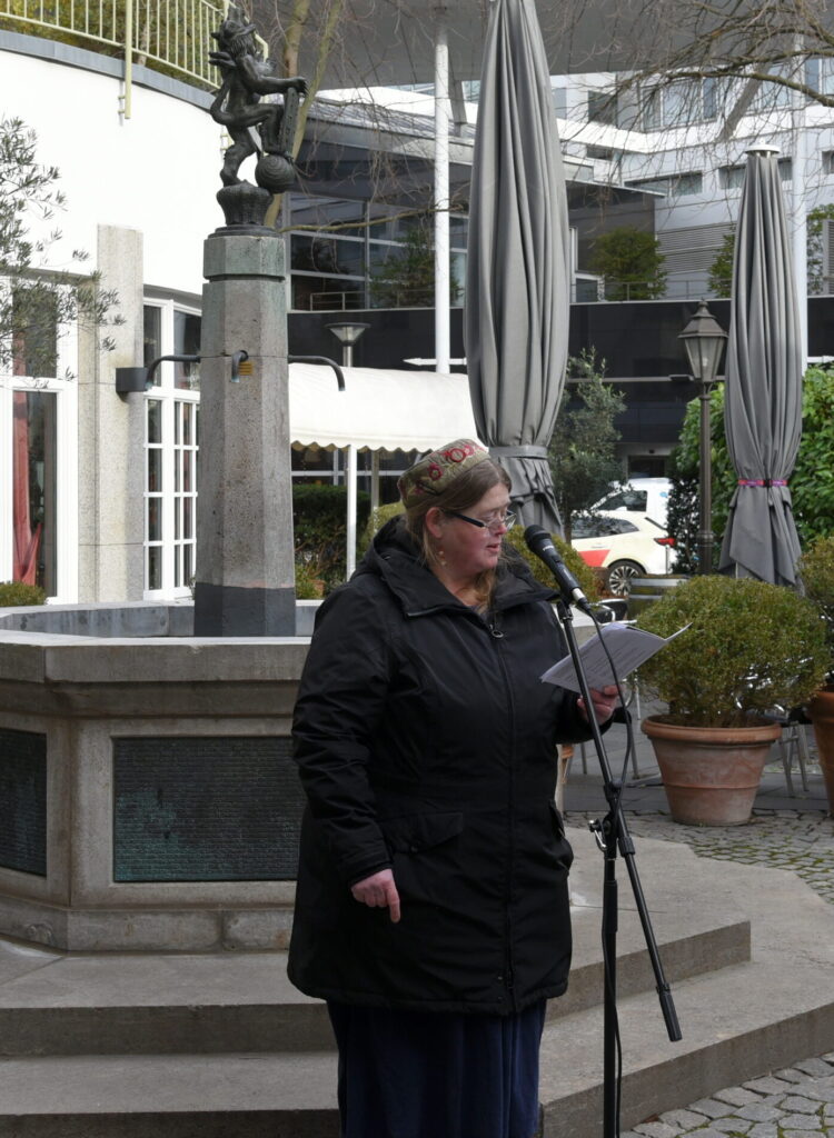 Anlässlich des 81. Jahrestages der Befreiung des Konzentrationslagers Auschwitz versammelten sich Jung und Alt an der Kindergedenkstätte Löwenbrunnen in der Kölner City. Eingeladen zur Gedenkstunde am ehemaligen Standort des jüdischen Reform-Realgymnasiums Jawne hatten die Synagogen-Gemeinde Köln, der Evangelische Kirchenverband Köln und Region, das Katholische Stadtdekanat und Masorti Rheinland in Verbindung mit dem Arbeitskreis „Lern- und Gedenkort Jawne“. Pfarrerin Dr. Dorit Felsch begrüßte nicht nur deren Vertretende. Ebenso willkommen geheißen wurden Mädchen und Jungen von drei weiterführenden Schulen.